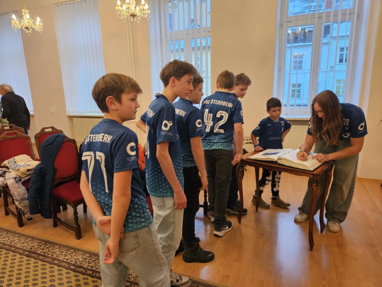 Z rukou starosty Stanislava Orsága a místostarosty Jiřího Krause se jim dostalo nejen poděkování za vzornou reprezentaci města Šternberka, ale všichni hráči i trenéři obdrželi dárkovou poukázku do Aquacentra Šternberk.
