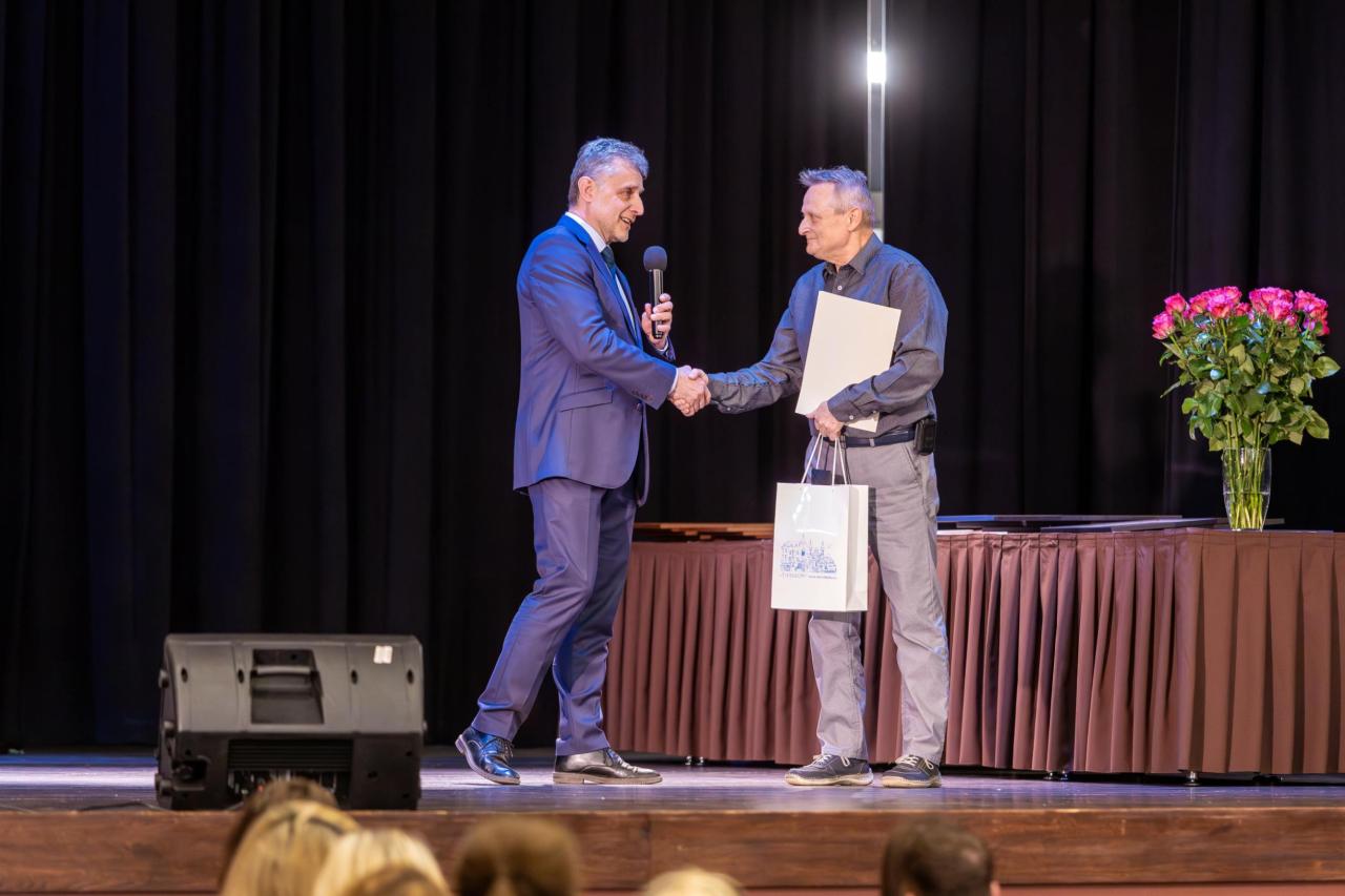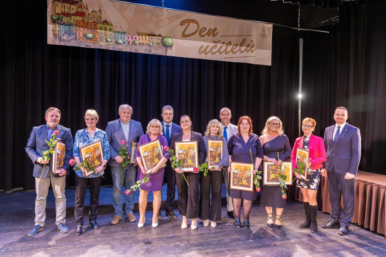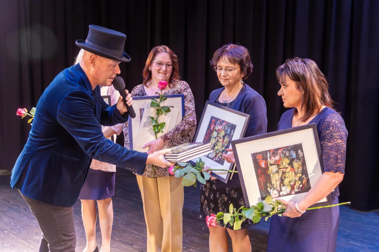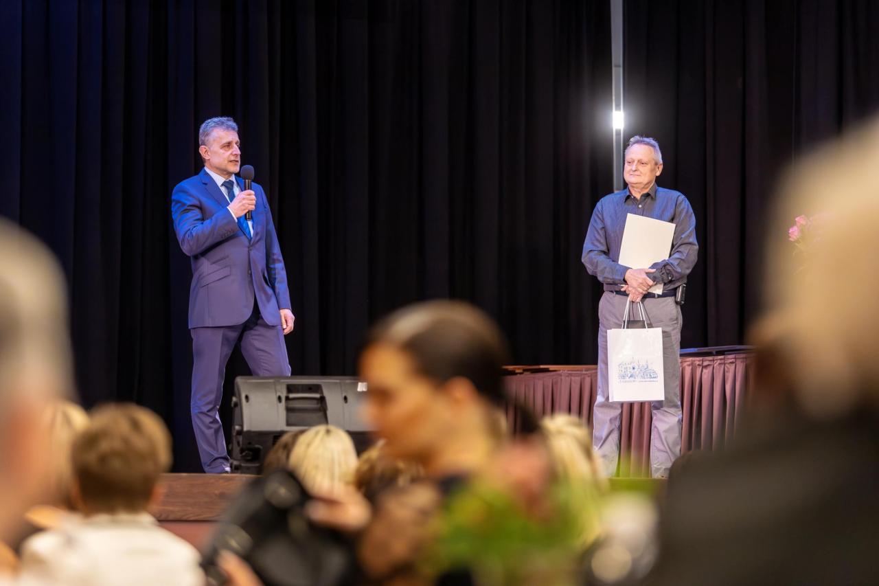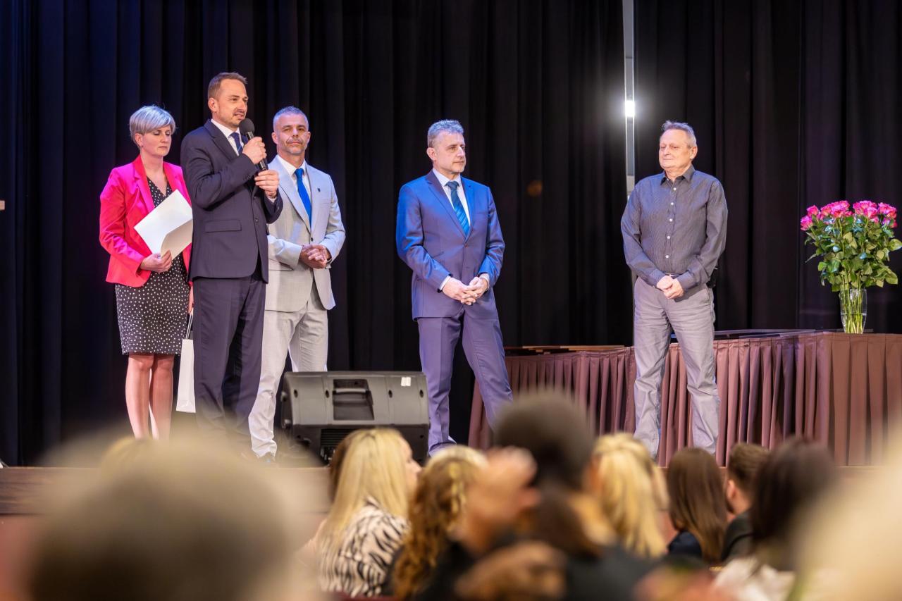 Představitelé města poděkovali před publikem za dlouholetou práci ve školství řediteli základní školy na náměstí Svobody panu Mgr. Pavlu Konečnému, který se v letošním roce rozloučí s ředitelskou životní etapou.