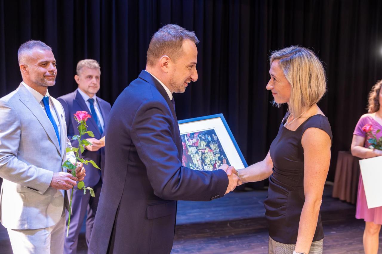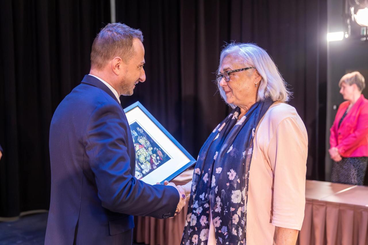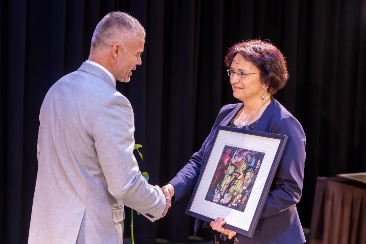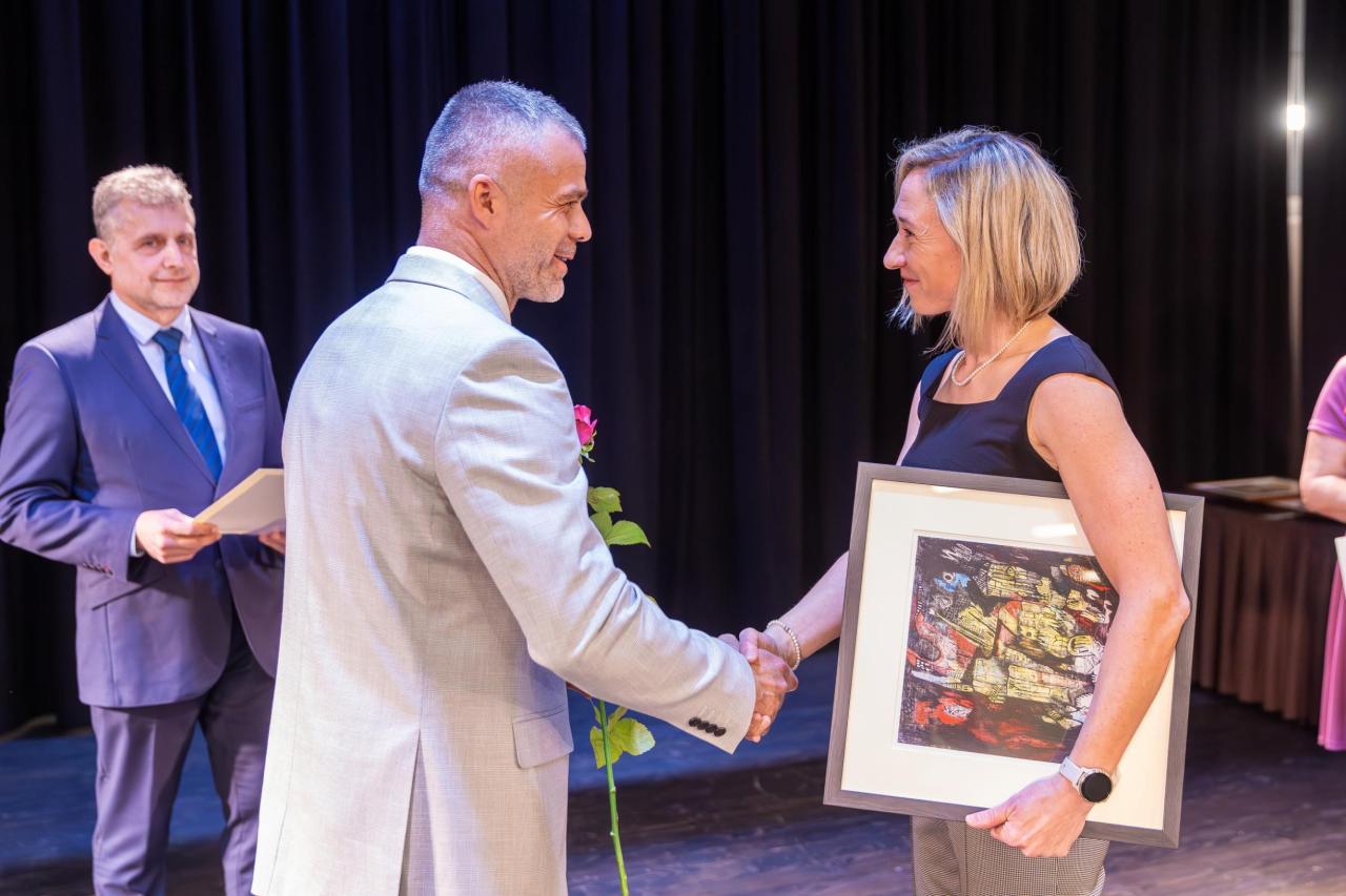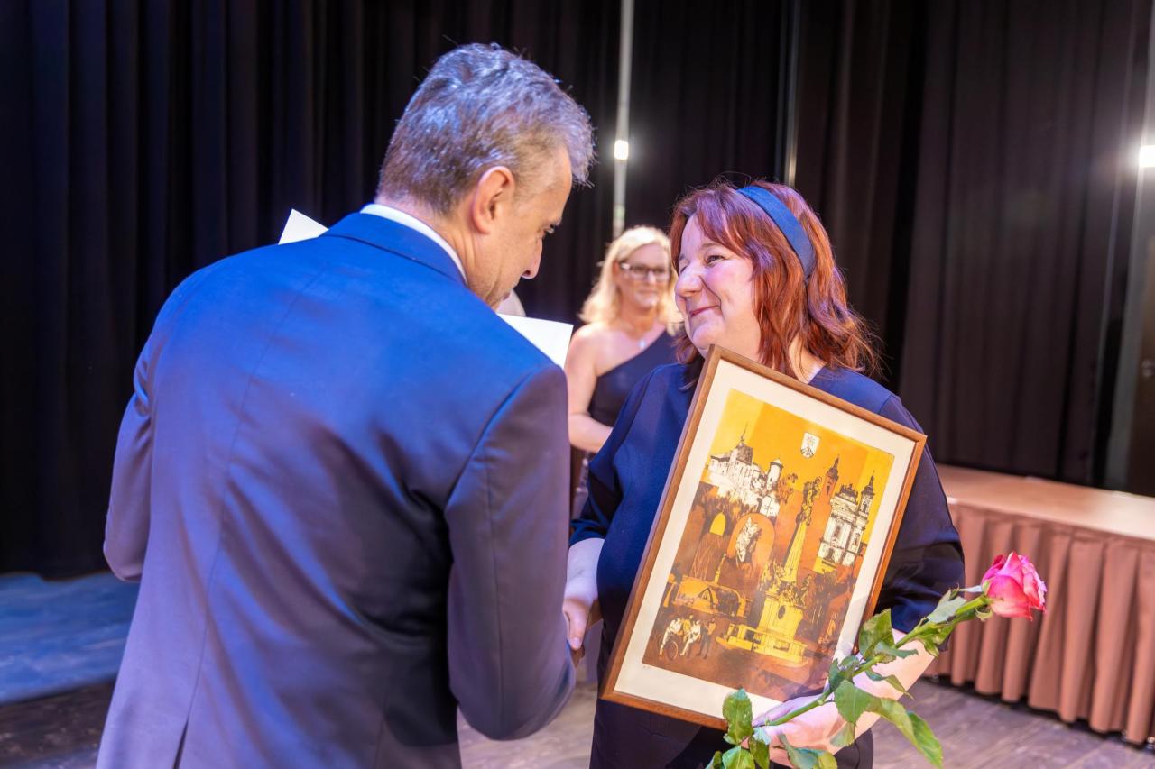 Představitelé města poděkovali před publikem za dlouholetou práci ve školství řediteli základní školy na náměstí Svobody panu Mgr. Pavlu Konečnému, který se v letošním roce rozloučí s ředitelskou životní etapou.