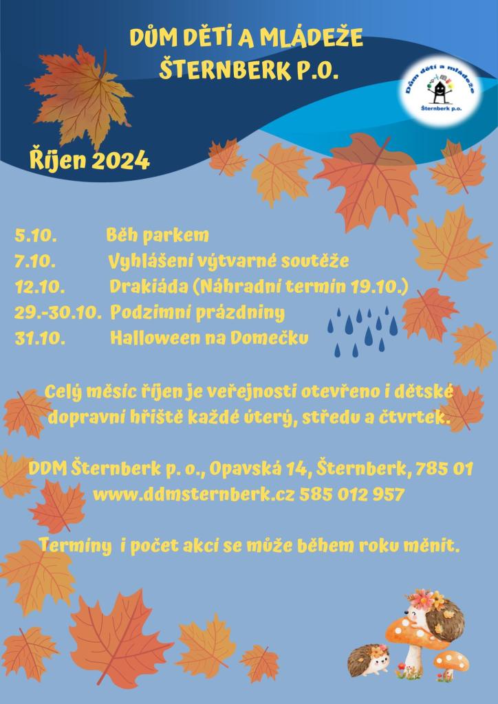 Jako každý rok bude 7. října vyhlášena výtvarná soutěž pro děti ze škol i školek v několika věkových kategoriích. Žáci budou vytvářet umělecká díla na dané téma a následně je zasílat do soutěže v DDM Šternberk.