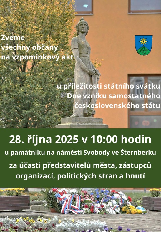 Zveme všechny občany na vzpomínkový akt u příležitosti státního svátku Den vzniku samostatného československého státu, a to 28. října 2025 v 10 hodin u památníku na náměstí Svobody ve Šternberku. Akce se zúčastní představitelé města, zástupci organizací, politických stran a hnutí.