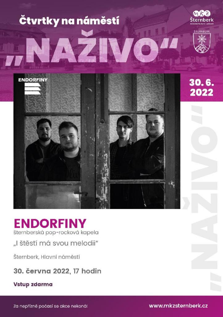 MKZ Šternberk Vás srdečně zvou k poslechu místní pocrockové kapely Endorfiny, která ve čtvrtek 30. června 2022 v 17:00 hodin zahraje na Hlavním náměstí ve Šternberku akustický koncert.