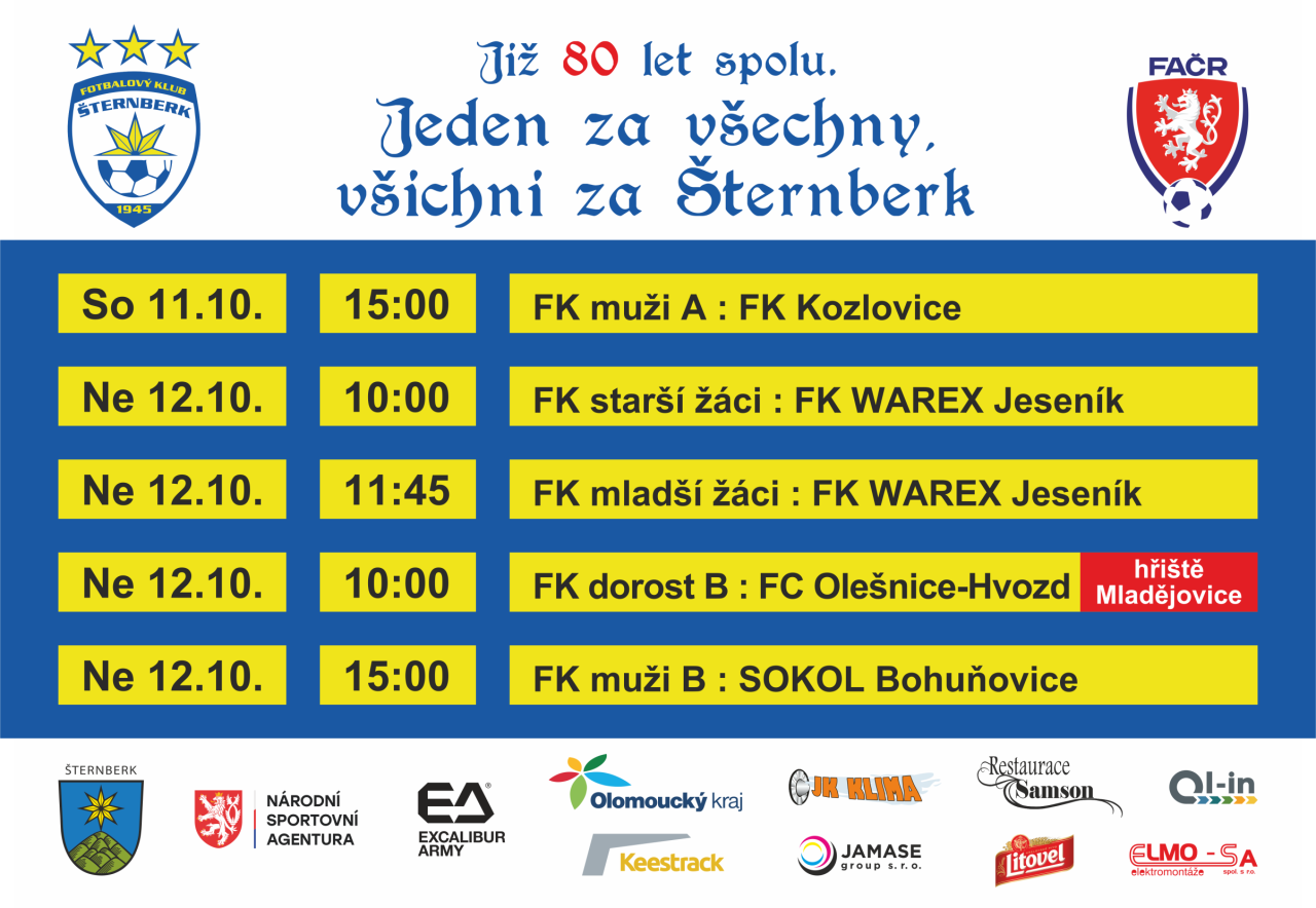 Přinášíme vám přehled nadcházejících utkání fotbalového klubu Šternberk.