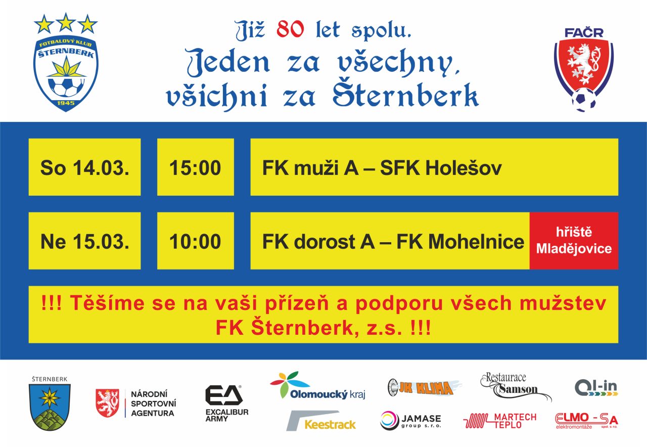 Přinášíme vám přehled nadcházejících utkání Fotbalového klubu Šternberk.