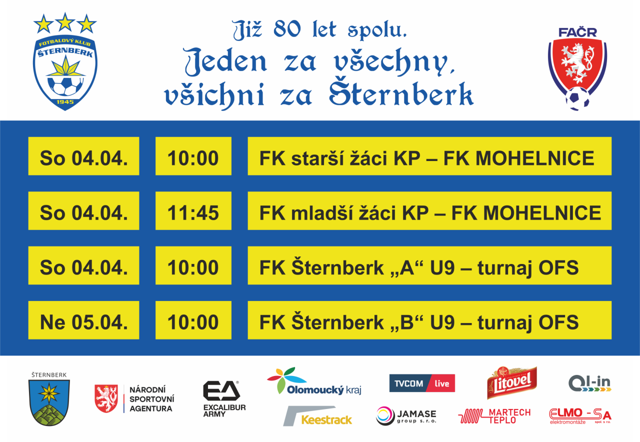 Přinášíme vám přehled nadcházejících utkání Fotbalového klubu Šternberk.