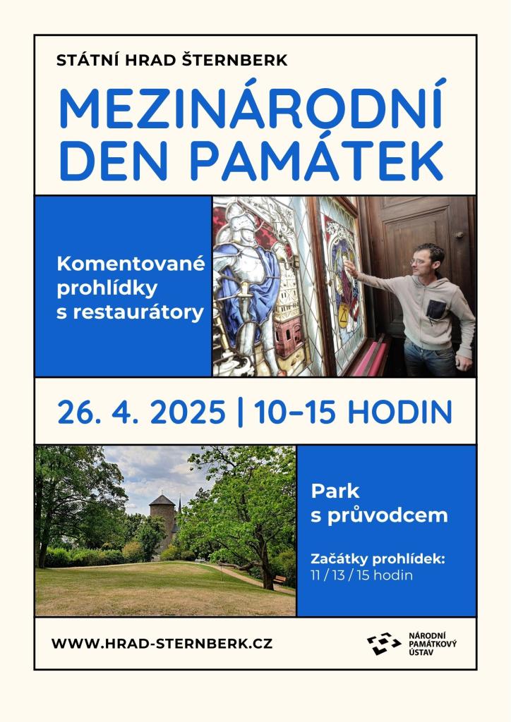 První volbou mohou být speciální komentované prohlídky s restaurátory. V tento den budeme provázet na speciálním rozšířeném okruhu zahrnujícím vybrané místnosti prvního i druhého patra hradu. Na trase budou mimo průvodců připraveni odborníci, kteří návštěvníky seznámí s tajemstvím obnovy historického mobiliáře. Návštěvníci uvidí konkrétní výsledky práce restaurátorů na exponátech hradu Šternberk. Délka prohlídky bude cca 75 minut.