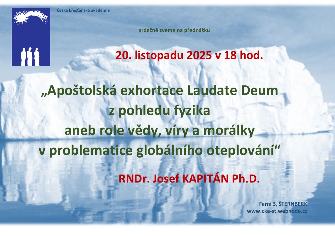 Přednášející, vyučující na PřF UP v Olomouci, představí podstatu vědeckého zkoumání globálního oteplování, popíše základní vlivy na klima Země a vyjádří se k využití větrné a solární energie, jak je navrhuje exhortace papeže Františka z roku 2023.