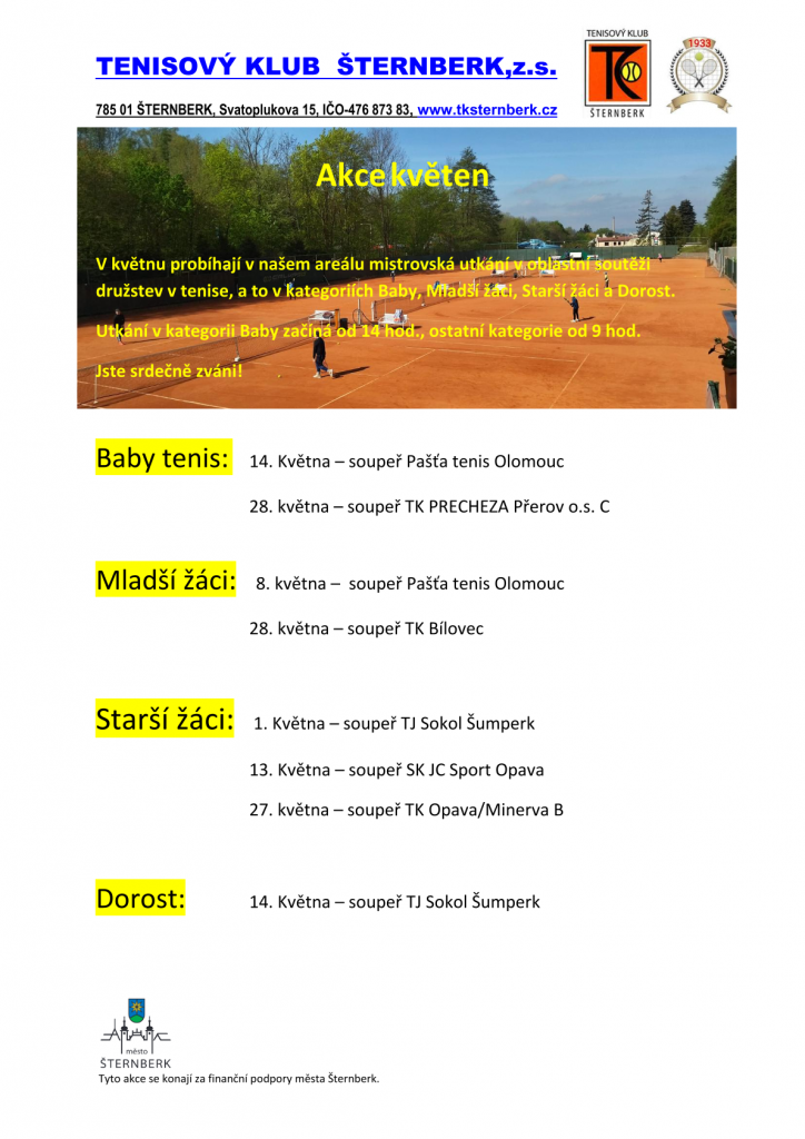 Tenisový klub Šternberk: Přehled utkání pro měsíc květen 1