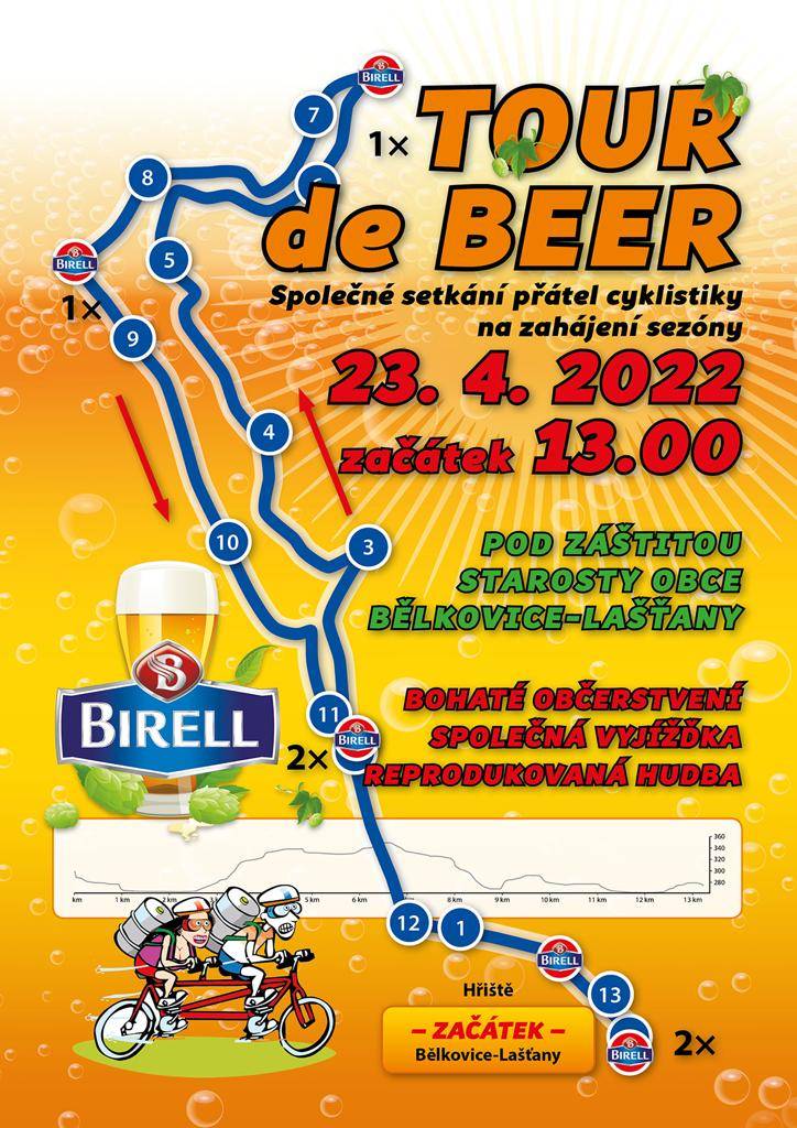 Zábavné putování po stopách Tour de Beer v okolí Bělkovice - Lašťany. Bohaté občerstvení zajištěno.