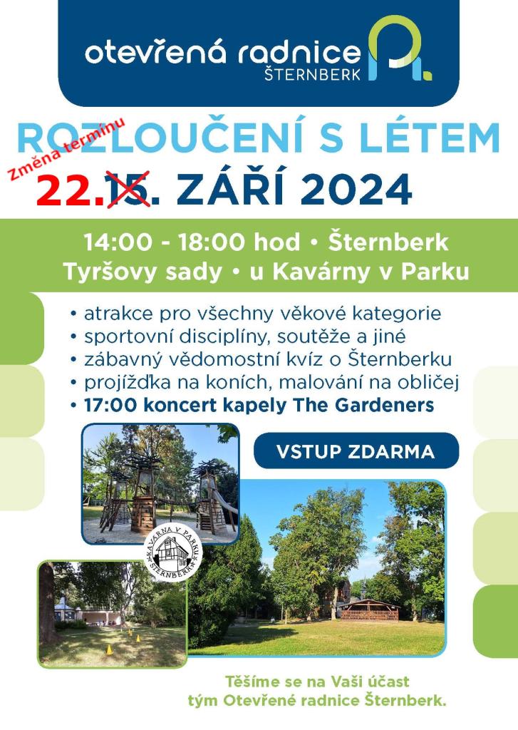 Přijďte se rozloučit s létem do Tyršových sadů ke Kavárně v Parku. Na programu budou atrakce pro všechny věkové kategorie, sportovní disciplíny, soutěže a mnoho dalšího. Na děti čeká projížďka na koních nebo malování na obličej, dospělí si užijí koncert kapely The Gardeners. Vstup je zdarma.