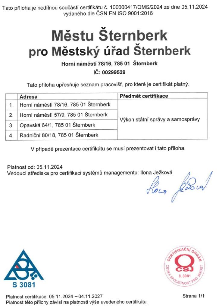 Web vytvořen z projektu Operačního programu Zaměstnanost s názvem „Městský úřad Šternberk = vstřícný, přívětivý a profesionální úřad“ registrační číslo CZ.03.4.74/0.0/0.0/18_092/ 0014375