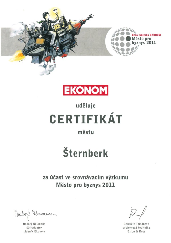 Ocenění podnikatelů a týdeníku Ekonom v soutěži Město pro byznys pro Šternberk převzal 8. září 2011 v Olomouci starosta Jaromír Sedlák.